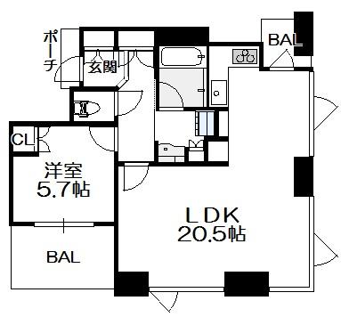 - 1LDK(洋室5.7畳 LDK20.5畳 )