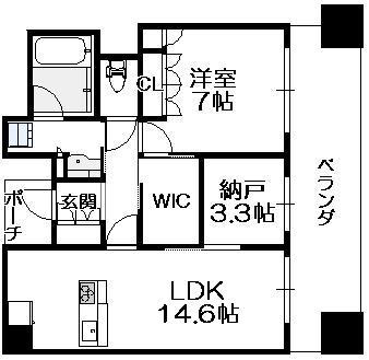 - 1SLDK(洋7.0 S3.3 LDK14.6)