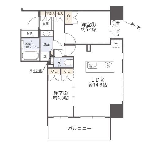 クラッシィタワー靱公園(大阪市 西区京町堀2丁目)にある2LDKのお部屋です。