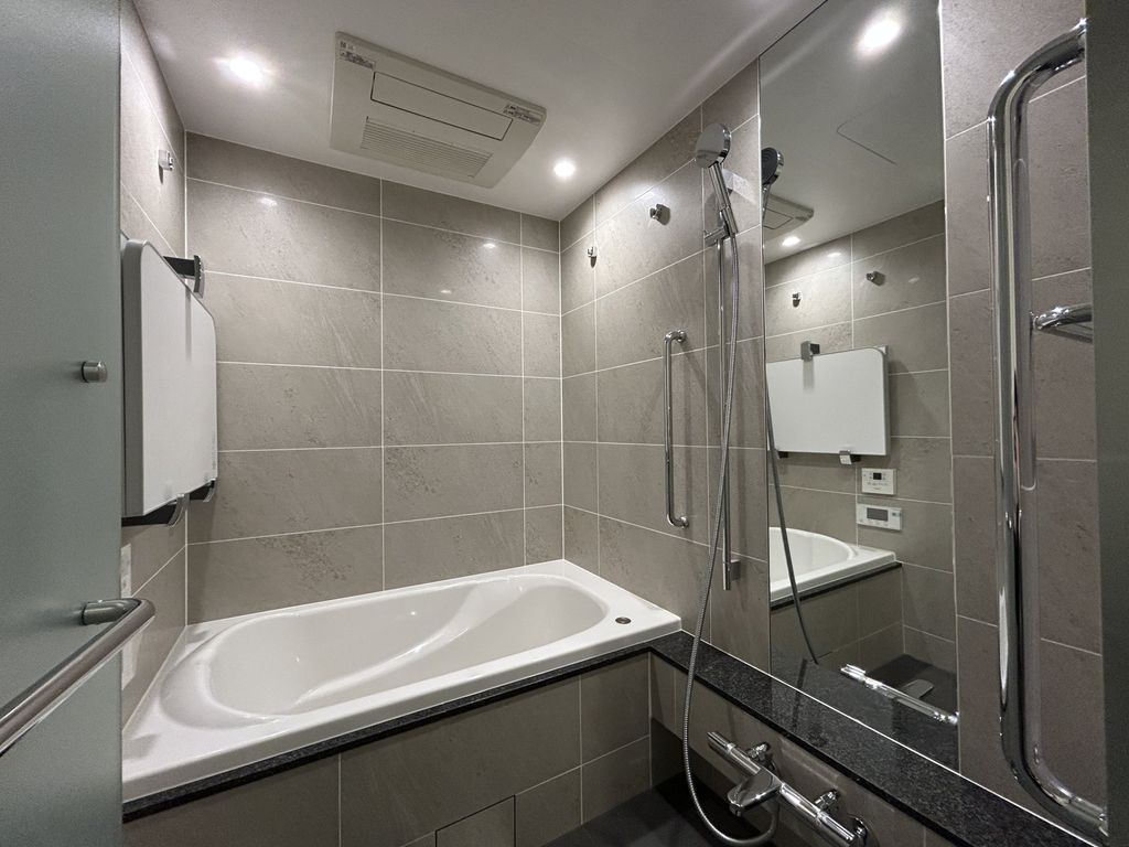 部屋設備:分譲賃貸、追い炊き機能、洗浄便座、室内洗濯機、浴室乾燥機、床暖房。