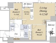 ザ・パークハウス 大阪梅田タワー(大阪市 北区中津1丁目)にある2LDKのお部屋です。