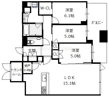- 3SLDK(洋6.1 洋5.0 洋5.0 S0.4 LDK15.1)