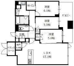 シティタワー梅田東(大阪市 北区本庄西1丁目)にある3SLDK(洋6.1 洋5.0 洋5.0 S0.4 LDK15.1)のお部屋です。