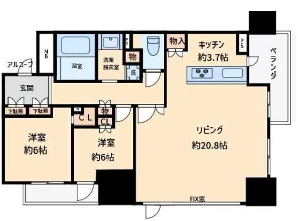 ジオタワー堺筋本町(大阪市 中央区久太郎町1丁目)にある2LDKのお部屋です。