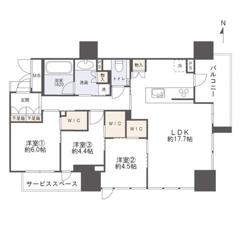 建物設備:オートロック、エレベータ、制震構造、スカイラウンジ、宅配ボックス、タワー型。