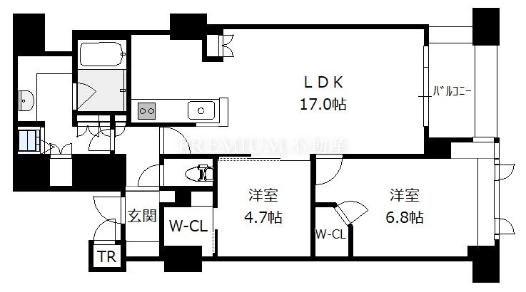 - 2LDK(洋6.8 洋4.7 LDK17.0)