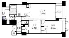 ビオール大阪大手前タワー(大阪市 中央区糸屋町1丁目)にある2LDK(洋6.8 洋4.7 LDK17.0)のお部屋です。