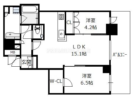 ブランズタワー梅田 North(大阪市 北区豊崎3丁目)にある2LDK(洋6.5 洋4.2 LDK15.1)のお部屋です。