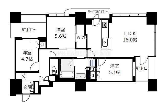 - 3LDK(洋5.6 洋5.1 洋4.7 LDK16.0)