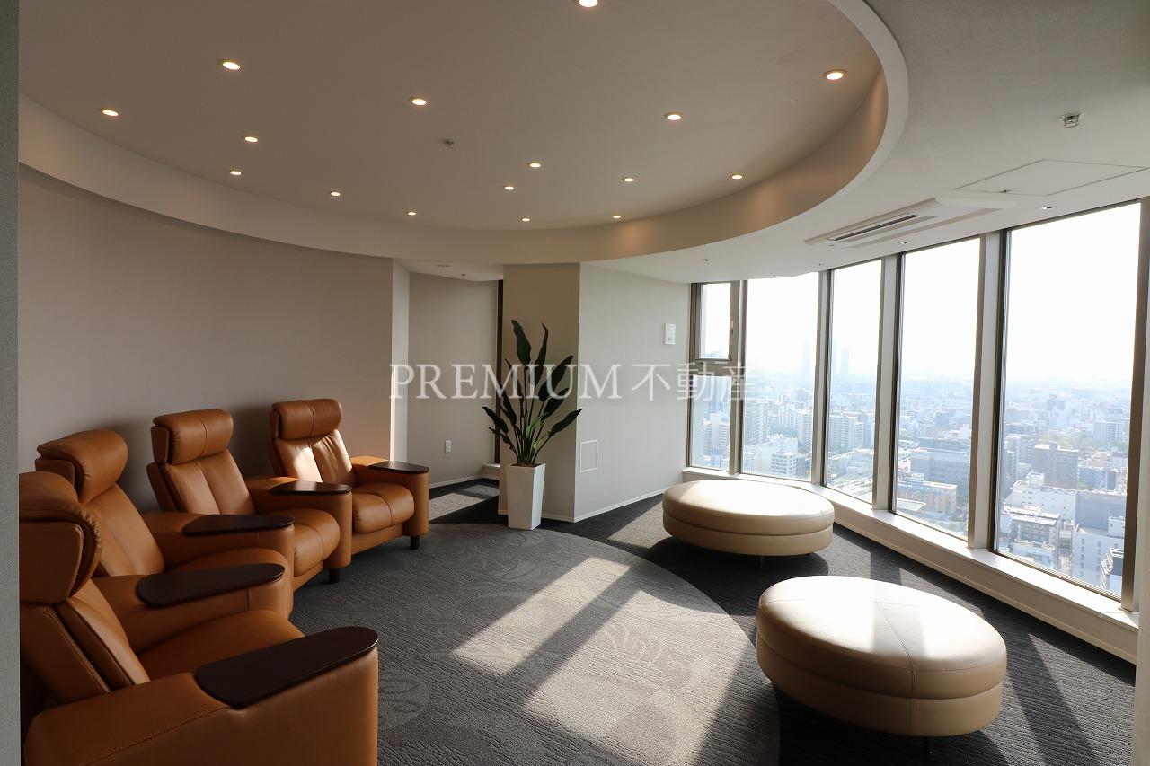 建物設備:オートロック、コンシェルジュ、エレベータ、ゲストルーム、ジム、パーティールーム、制震構造、スカイラウンジ。