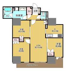 リバーガーデンタワー 上町台筆ヶ崎(大阪市 天王寺区筆ケ崎町)にある3LDKのお部屋です。