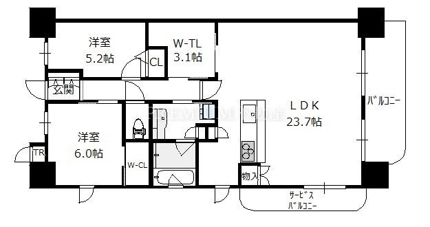 - 2SLDK(洋6 洋5.2 S3.1 LDK23.7)
