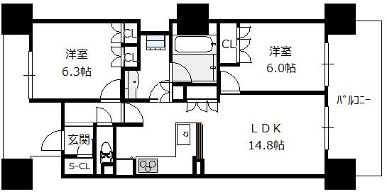 - 2LDK(洋6.3 洋6 LDK14.8)