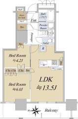 専有面積:58.26㎡、13階、地上44階建。