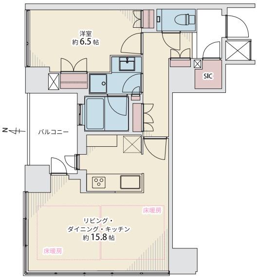 部屋設備:浄水器、角部屋、シューズインクローゼット、洗浄便座、対面式キッチン、浴室乾燥機、床暖房。