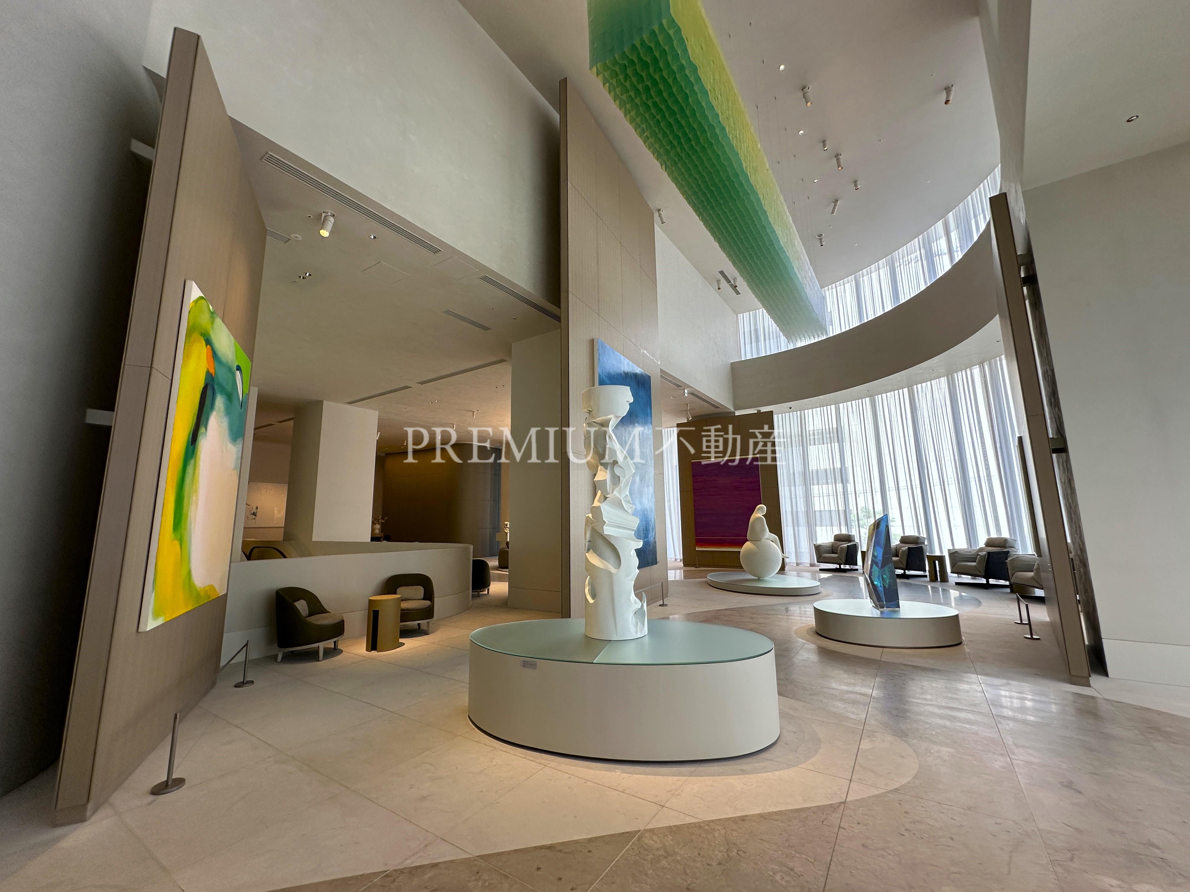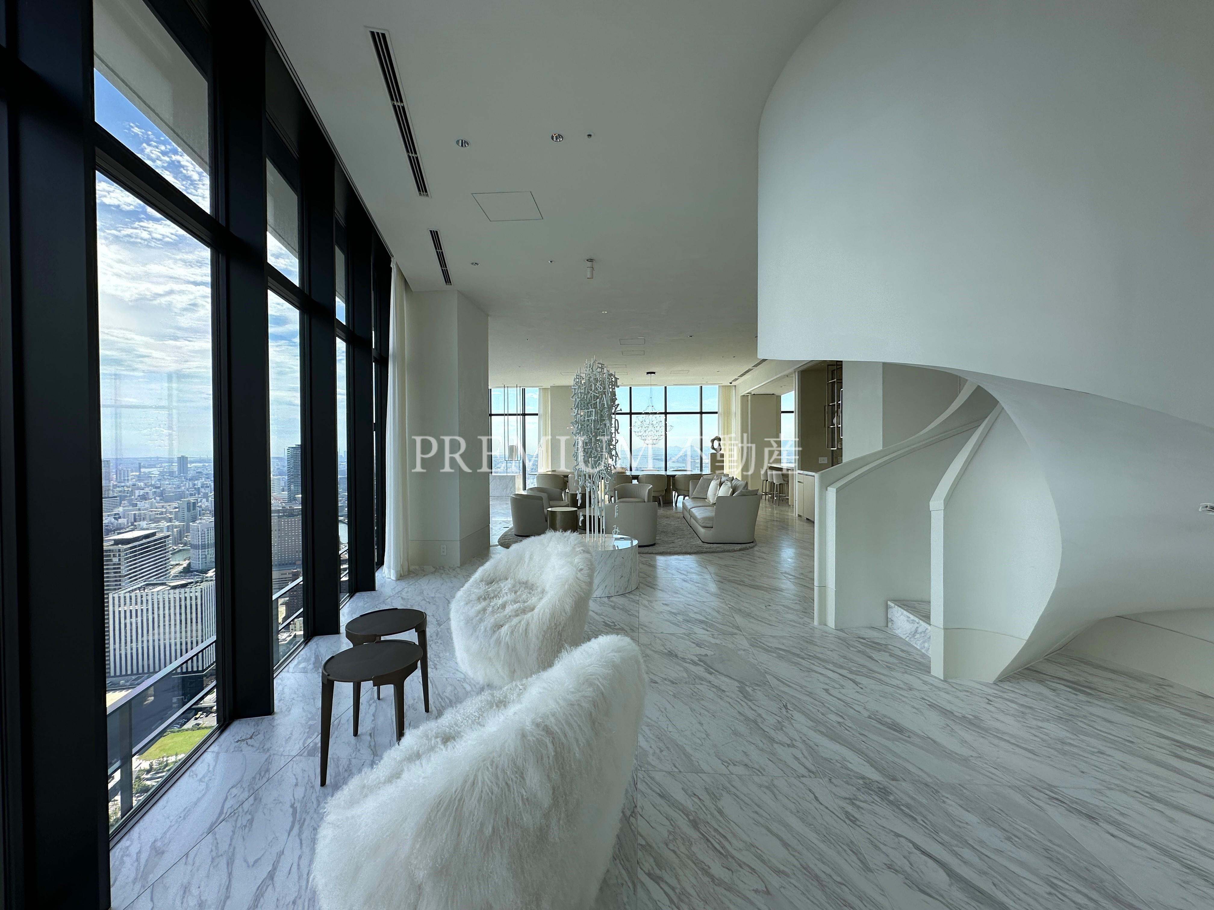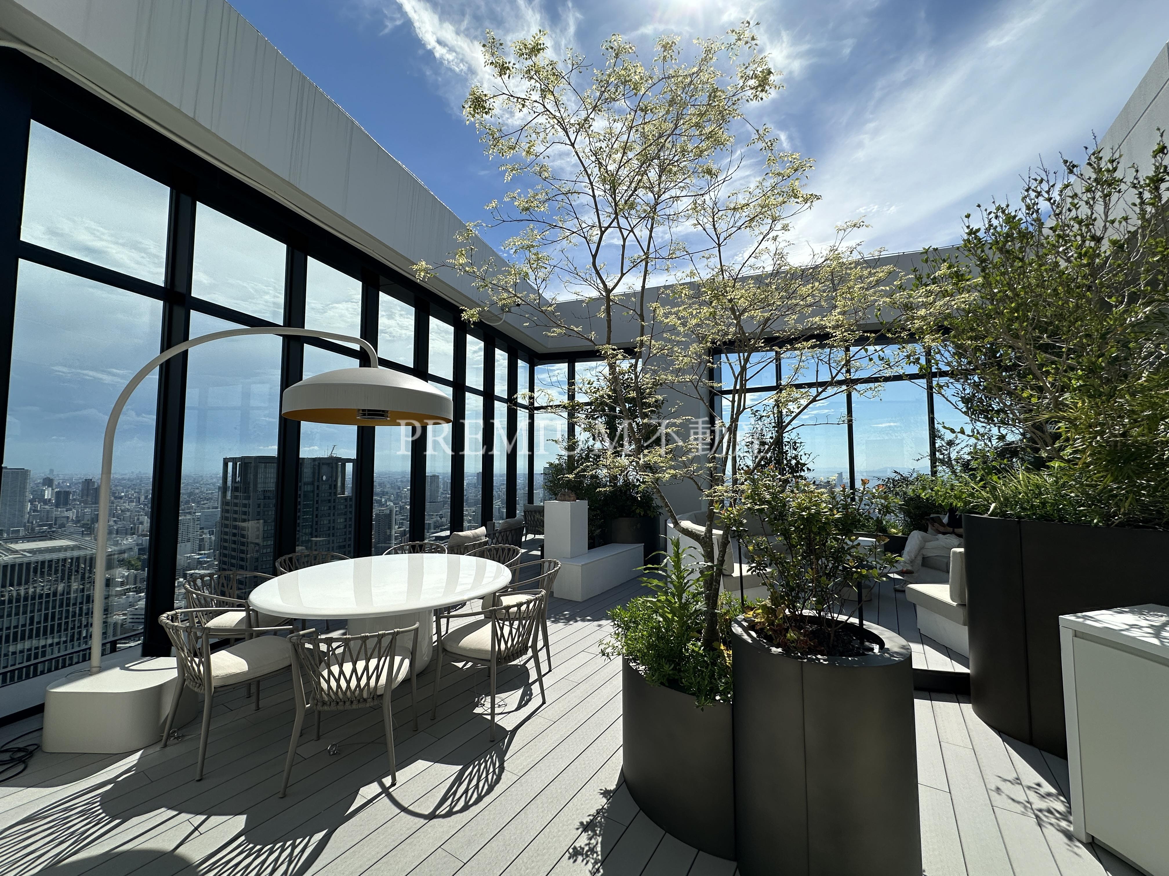 建物設備:オートロック、オール電化、コミュニティルーム、コンシェルジュ、エレベータ、ジム、制震構造、スカイラウンジ。