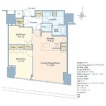 建物設備:オートロック、オール電化、コミュニティルーム、コンシェルジュ、エレベータ、ジム、制震構造、スカイラウンジ。