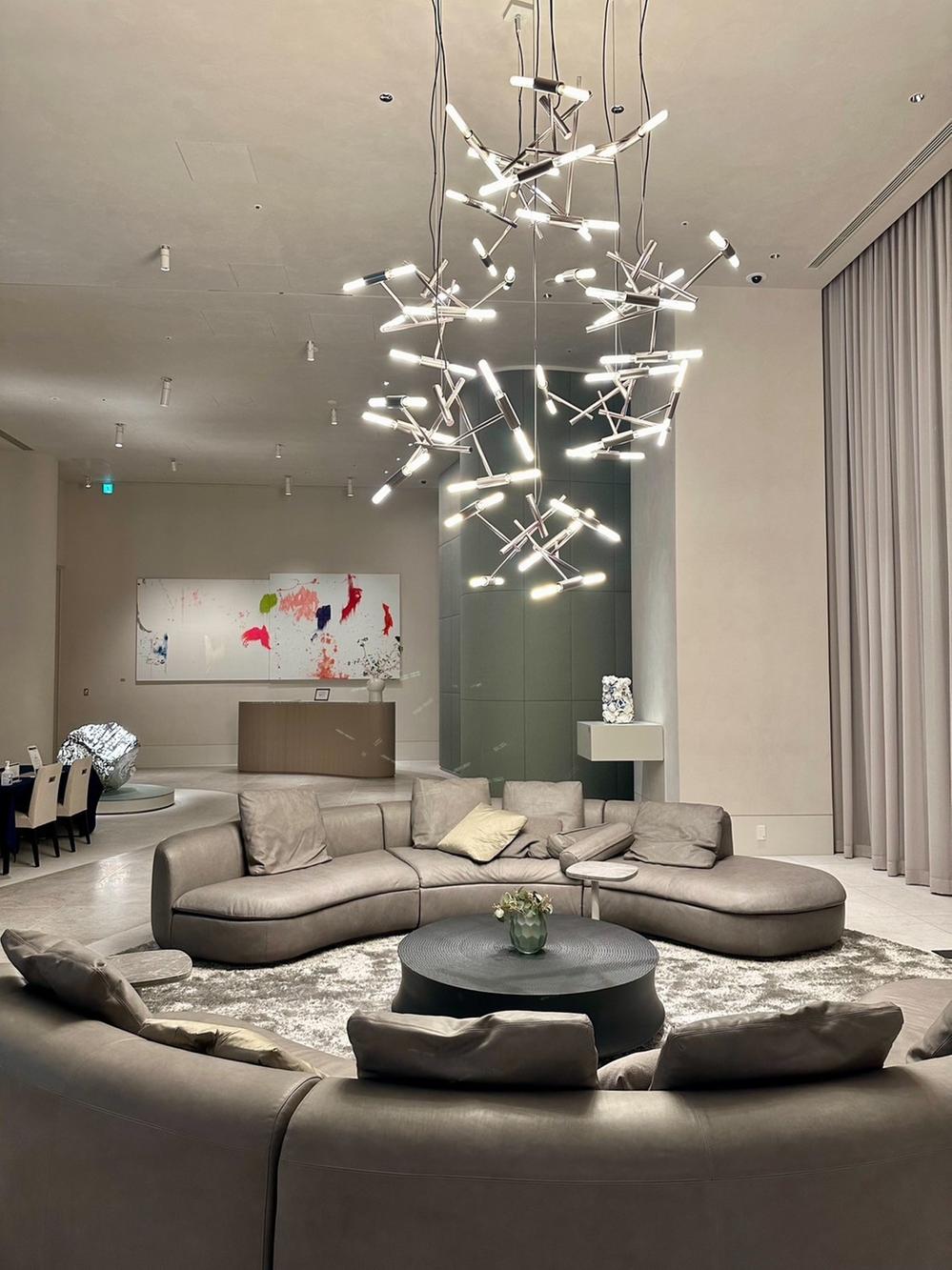 建物設備:オートロック、オール電化、コミュニティルーム、コンシェルジュ、エレベータ、ジム、制震構造、スカイラウンジ。