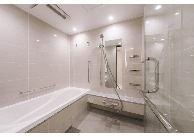 部屋設備:分譲賃貸、追い炊き機能、洗浄便座、室内洗濯機、浴室乾燥機、床暖房。