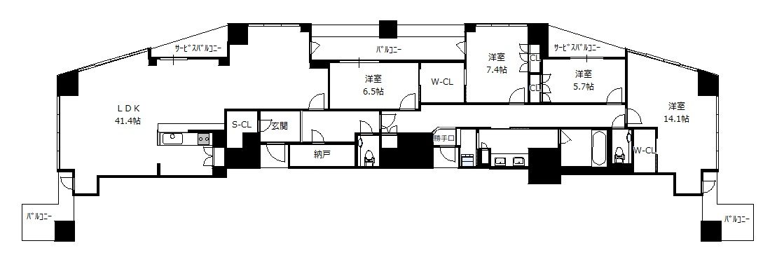 4SLDK(洋14.1帖 洋7.4帖 洋6.5帖 洋5.7帖 S2.1帖 LDK41.1帖)