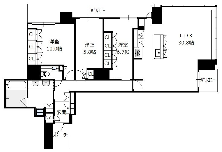 3LDK(洋10.0帖 洋6.7帖 洋5.8帖 LDK30.8帖)