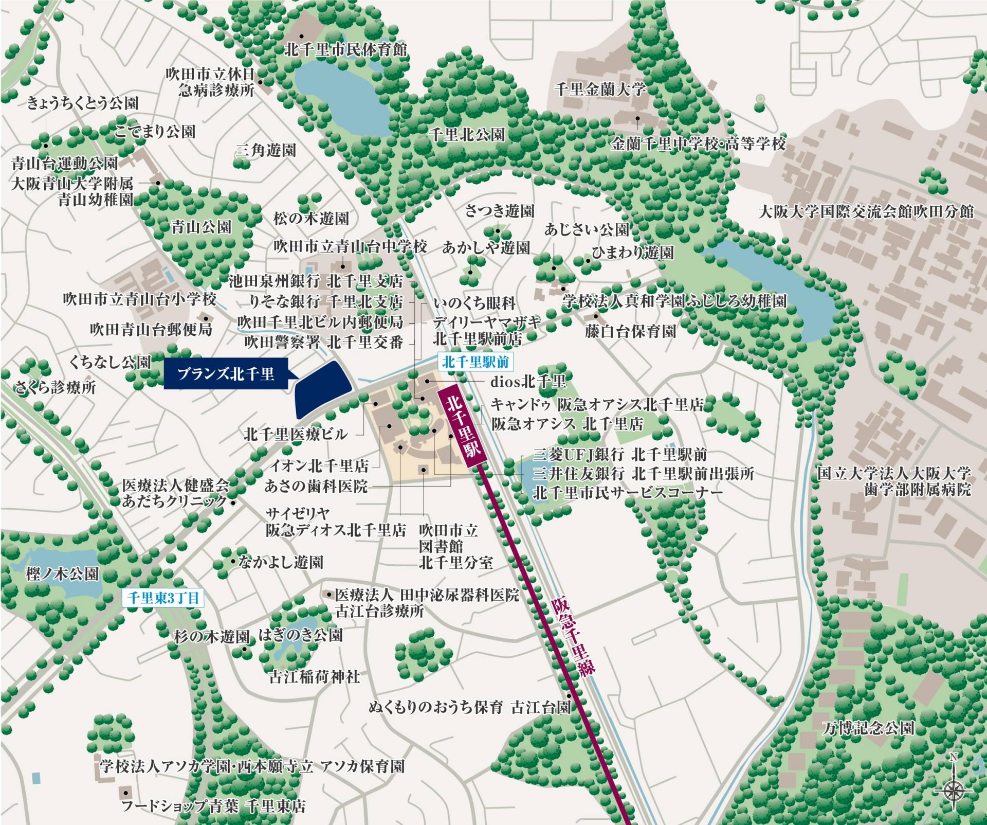 沿線:阪急電鉄千里線「北千里」駅徒歩4分