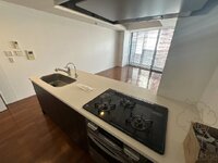 - 【Living room・Entrance・Interior】 / Dimple key, monitor-equipped intercom, air conditioning, flooring, floor heating (living dining only), blinds, downlights, high-speed internet, LAN wiring, soundproof walls, double glazing (only in units on the west side), balcony / 【Kitchen】 / System kitchen, dishwasher, built-in oven range, refrigerator, garbage disposer, gas stove (2 or more burners) / 【Sanitary】 / Toilet with warm water bidet, gas water heater, wash basin, laundry pan / 【Bathroom】 / Automatic water heating (reheatabl