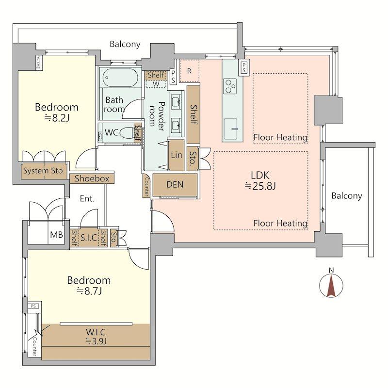 房间设备: 阳台数量 / 无障碍 / 景观良好 / 洗碗机 / 角房 / LDK20帖以上 / 系统厨房 / 步入式衣柜。