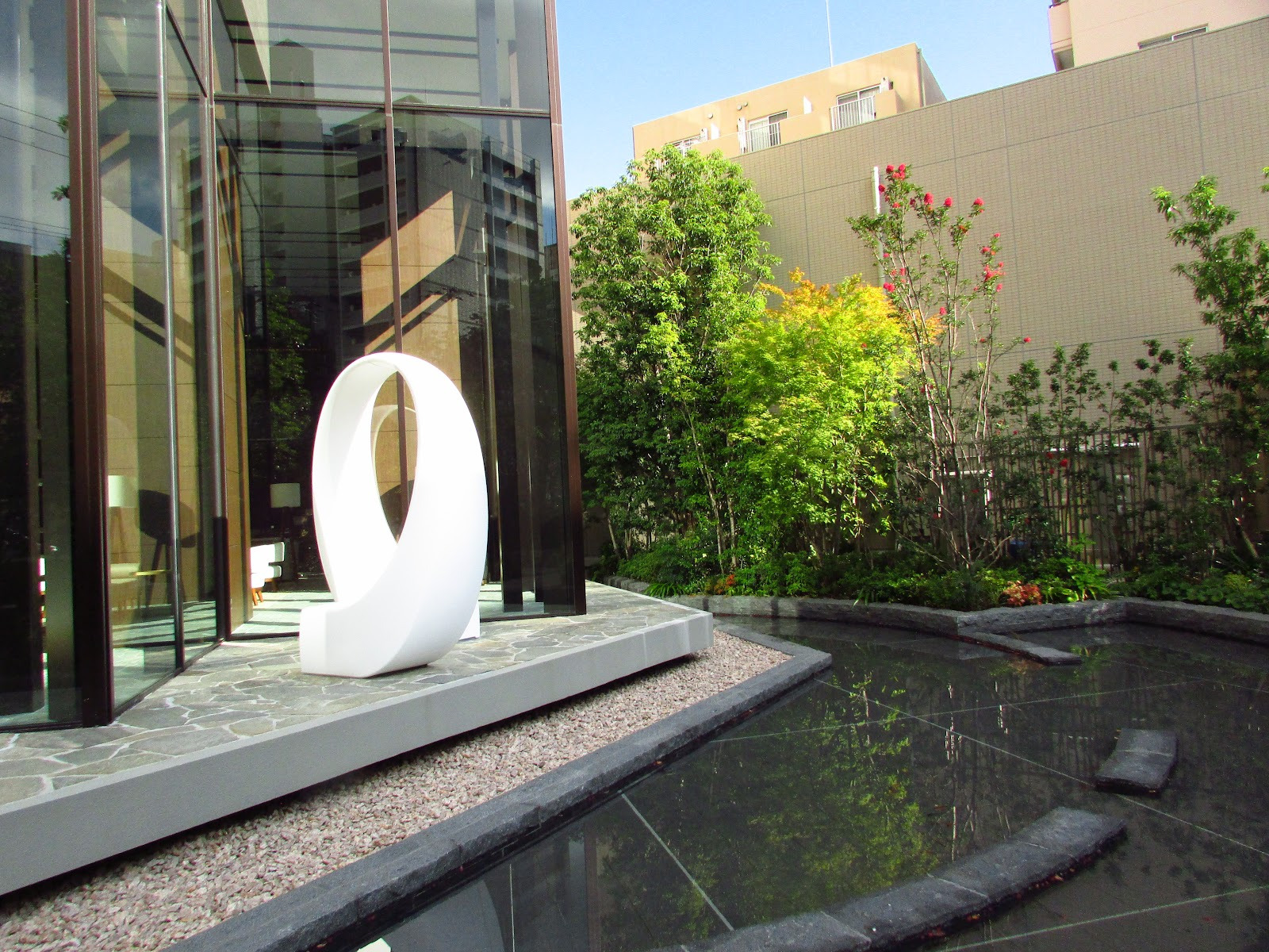 通往入口的绿树和花草丰富的空间让您忘记身处都市中心。