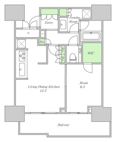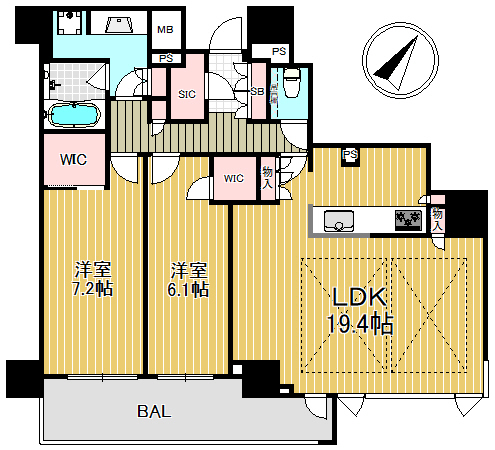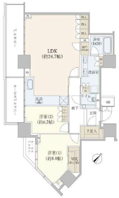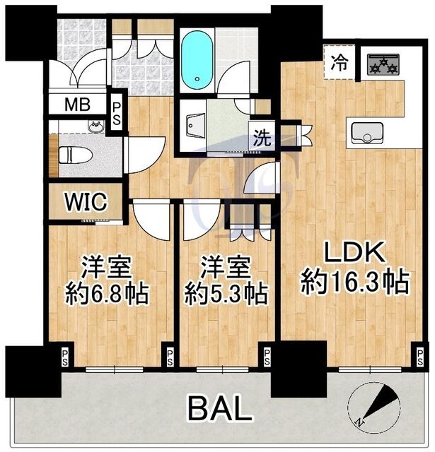 GRAND MAISON 上町台 RESIDENCE TOWER(大阪市 中央区内久宝寺町4街区) 的房源,户型为 2客厅餐厅加厨房