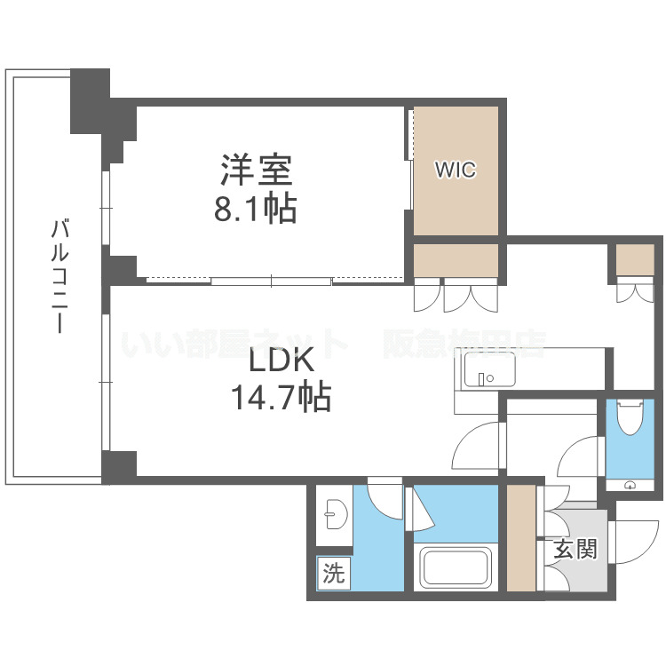 GRAND MAISON 新梅田 TOWER THE CLUB RESIDENCE(大阪市 北区大淀南2街区) 的房源,户型为 1房间