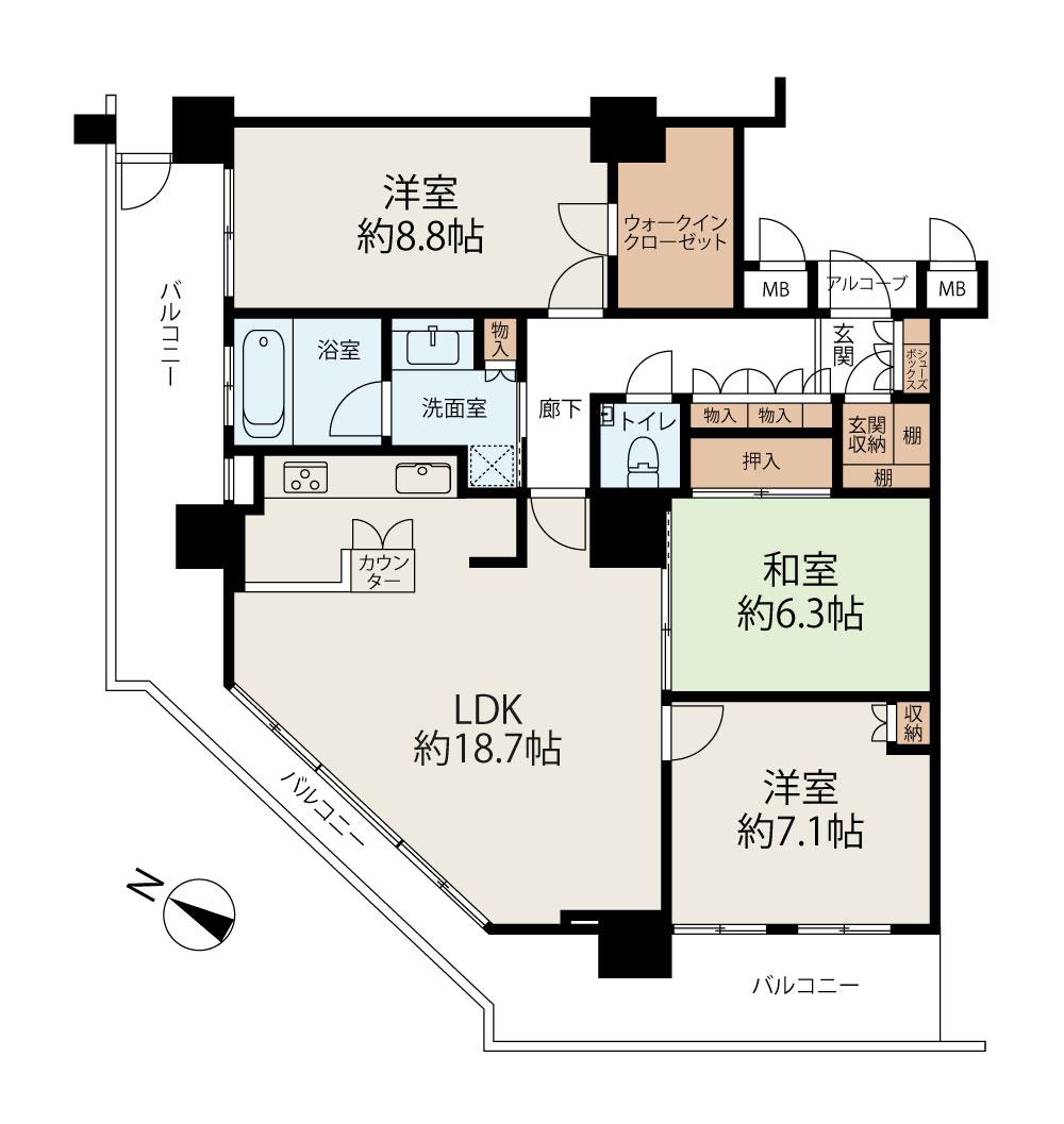 外观为32层瓦面建筑,设有门禁、快递柜,在住户内设有带有电视监视器的对讲机、互联网连接、温水暖气地板、带喷雾功能的浴室暖风空气调节器、温水冲洗暖气坐便器、洗碗机、垃圾处理器等。