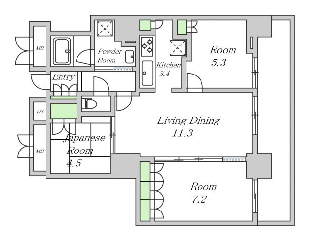 房间设备: 带洗净便座 / 室内洗衣机 / 浴室干燥机。